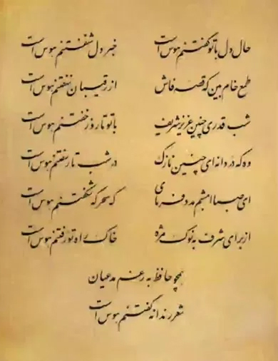 غزل چهل و دوم حافظ با مصرع عاشقانه «حال دل با تو گفتنم هوس است» آغاز میشود و درونمایهای عمیقاً رندانه را به نمایش میگذارد. این شعر جاودانه، قرنهاست که مورد بحث ادیبان بوده است؛ برخی با استناد به مفاهیم بلند آن، آن را نماد عشقی حقیقی و الهی میدانند، در حالی که عدهای دیگر با توجه به صراحت گفتار و روحیه سرفرازانه شاعر، آن را حاصل یک رقابت غزلی و از سرودههای دوران جوانی خواجه میشناسند.